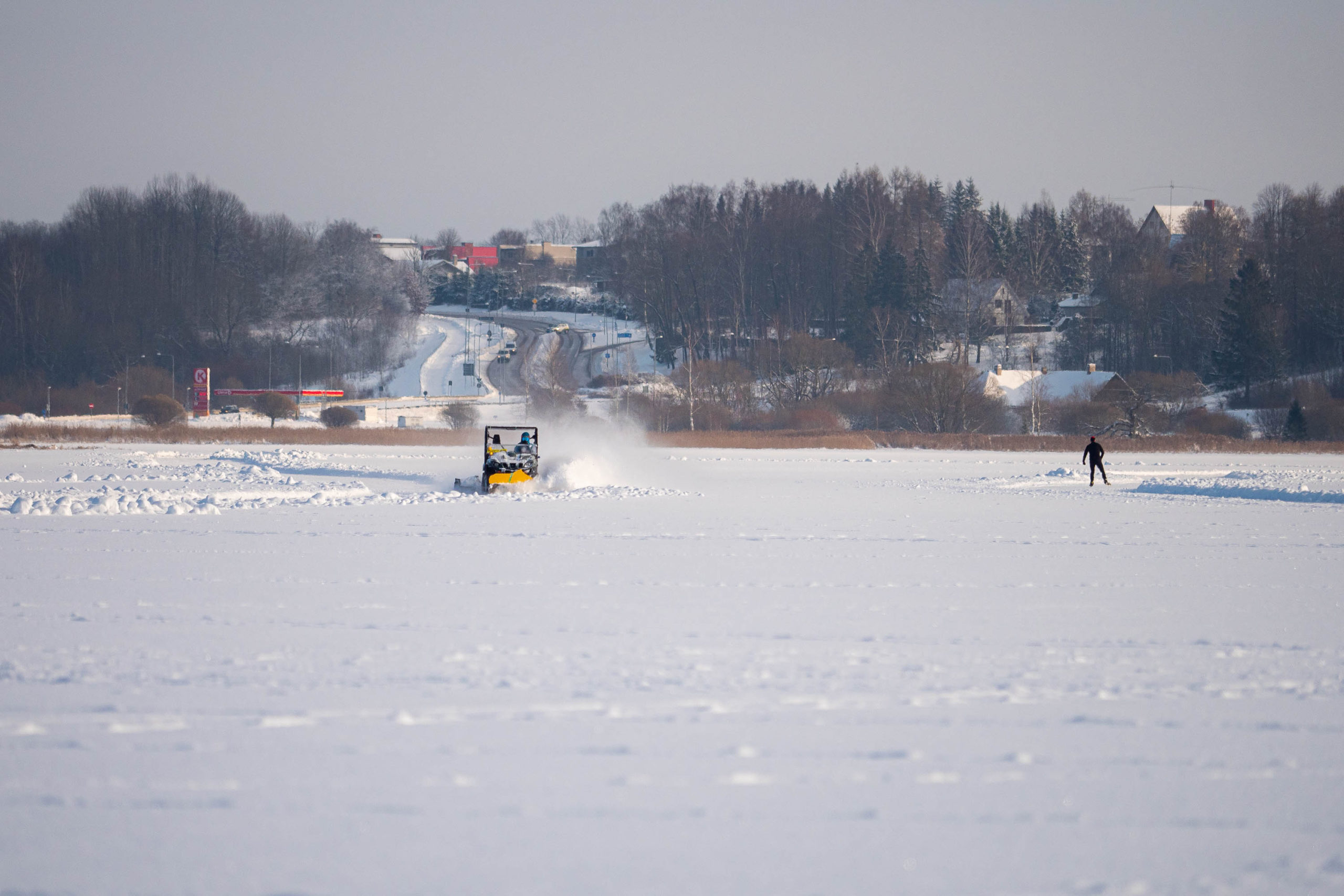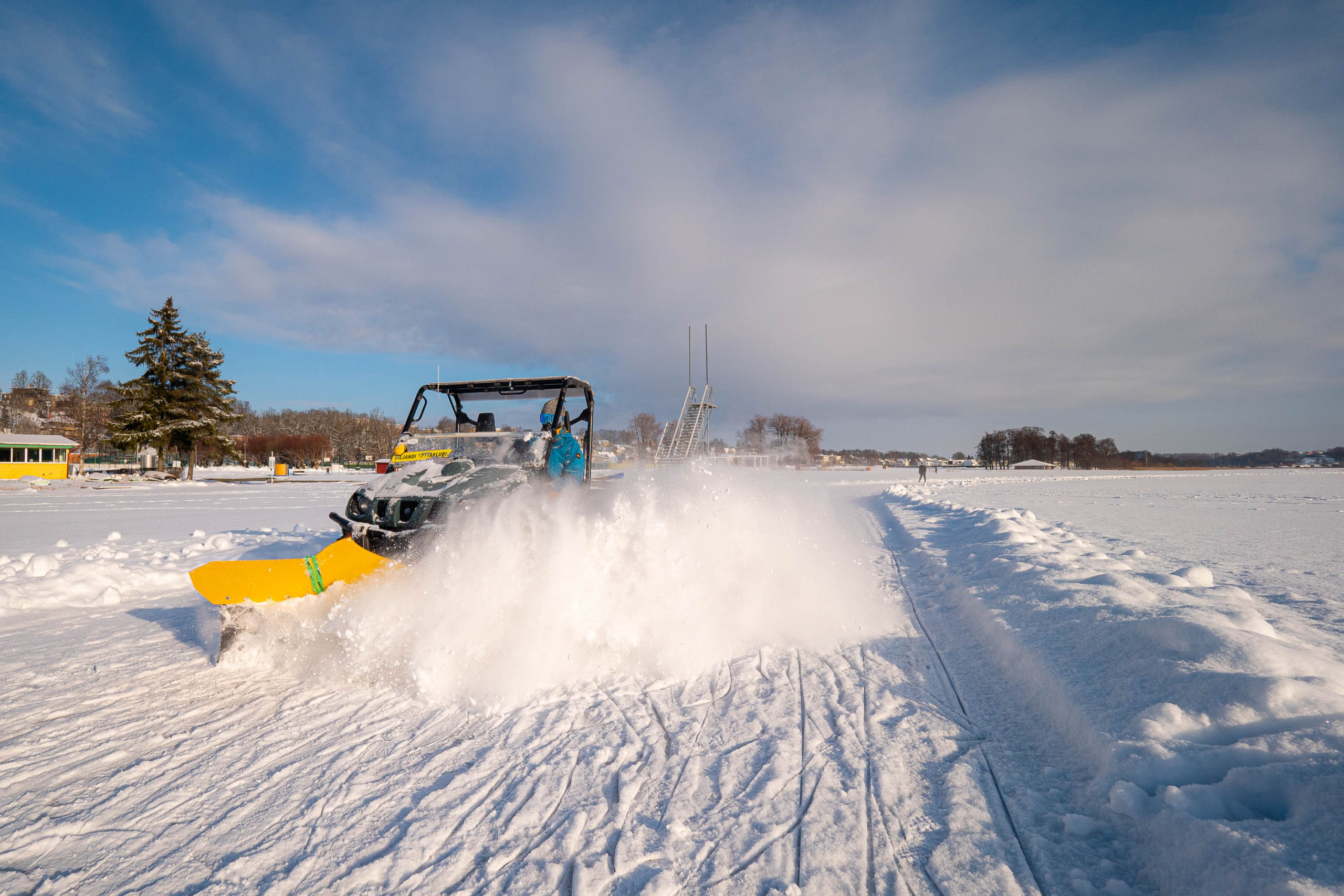 Viljandi järve uisurada on värskelt freesitud ja lumetõrje tehtud.